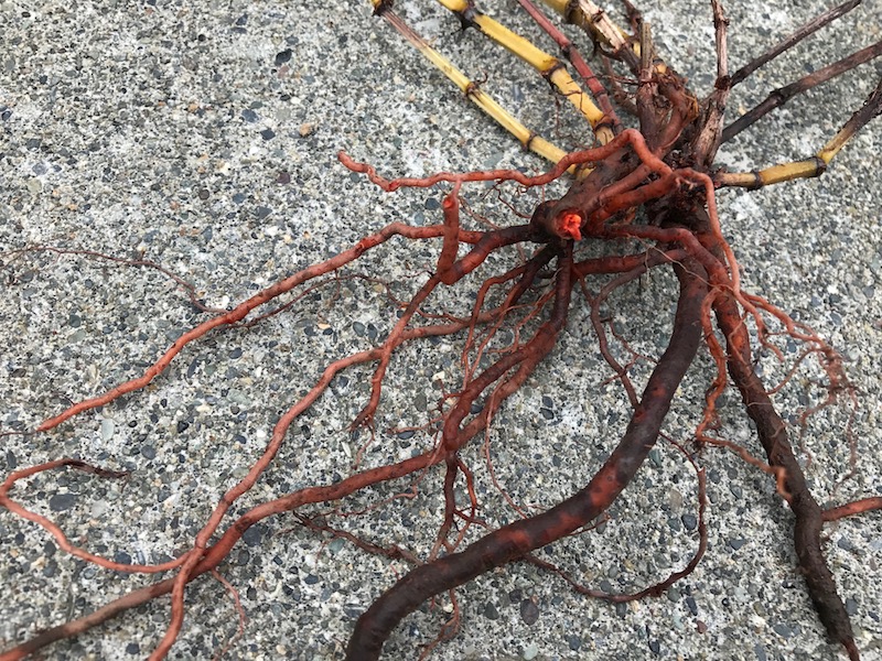 収穫直後のムツバアカネの根 Rubia tinctorum fresh root